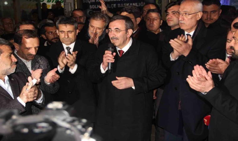 Cumhurbaşkanı Yardımcısı Cevdet Yılmaz, Muş ziyaretinin ardından Bingöl’ün Solhan ilçesine gelerek vatandaşlara hitap etti. Yerel seçimlerde hizmetin ön plana çıktığını aktaran Cumhurbaşkanı Yardımcısı Yılmaz, “Mayıs ayında bir masa kurmuşlardı hatırlarsanız, 6’lı masa. Ne oldu masaya şimdi? Dağıldı, gitti. Çünkü sağlam temeller üzerinde oluşturulan bir masa değildi bu. Karşıtlık üzerinden oluşturulan, yıkma üzerine oluşturulan bir masaydı. Cumhur İttifakı ise öyle değil, geniş bir mutabakata sahip, temel değerlerde bir araya gelmiş mutabakat. Yerel seçimler, siyasetten ziyade hizmetin ön plana çıktığı seçimlerdir. Genel politikalar artık belirlendi, meclisimiz seçildi, hükümetimiz seçildi. Hemen sonrasında hükümet kuruldu, yeni hükümet sistemimizin de avantajıyla hiç vakit kaybetmeden işlerimizi yapmaya başladık. Güçlü bir kabinemiz var. Bütün meselelerde elimizden gelen tüm gayreti sarf ediyoruz. Kolay bir dönemde değiliz, dünyanın ekonomi olarak, ticari olarak, tarihi ortalamalarının altında seyrettiği bir dönemdeyiz. Bir taraftan da çatışmalar, kavgalar var bölgemizde. Kuzey tarafta Ukrayna, Rusya savaşı çok yıkıcı bir savaş olarak devam ediyor. Güneyimizde hepimizin içini burkan, hepimizin içine büyük acılar salan Gazze’deki hadiseleri izliyoruz. Tam olarak istediğimiz istikrar hiçbir şekilde oluşmuş değil. Bütün bunlara rağmen, Türkiye yoluna devam ediyor” dedi.