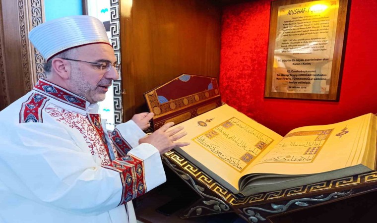 İHA muhabirine konuşan Camii İmam Hatibi Nasrullah Yavuz, caminin resmi açılışında Cumhurbaşkanı tarafından bu Kur’an-ı Kerim’in hediye edildiğini belirtti. Cumhurbaşkanının ziyaret sırasında camiyle ilgili kendilerinden bilgi aldığını hatırlatan Yavuz, o gün kendileriyle arasından geçen ‘hafızlık’ diyalogunu anlattı. Bir Cumhurbaşkanı’nın Kur’an-ı Kerim ile meşgul olmasının kendilerini mutlu ettiğini dile getiren Yavuz, “Caminin içinde bize bu Kur’an-ı Kerimi takdim ettiler. Bizler de o gün bu camlı dolabı yaptırdık. Daha sonra camimizin güney kısmına bıraktık. Herkesin istifade etmesi ve görmesi gereken mübarek Kur’an-ı Kerim’i camimizde muhafaza ediyoruz” dedi.