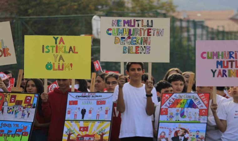 29 Ekim Cumhuriyet Bayramı 100’üncü yılında okullarda öğrencilerin ve velilerin eşliğinde büyük bir coşkuyla kutlandı. Cumhuriyetin temellerini atan başta Ulu Önder Mustafa Kemal Atatürk ve silah arkadaşları anısına saygı duruşunda bulunup İstiklal Marşı’nın okunmasıyla başladı.