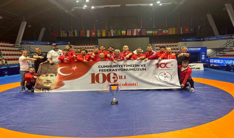 Arnavutluk’un başkenti Tiran’da 23-29 Ekim tarihleri arasında düzenlenen U23 Dünya Şampiyonası’nın son gününde milli takım, madalyalara ve kupalara ambargo koydu. Grekoromen stilde 1 altın, 3 gümüş ve 2 bronz madalya kazanan U23 Grekoromen Güreş Milli Takımı, tarihinde ilk kez takım halinde dünya şampiyonu oldu. Türkiye Cumhuriyeti’nin ve Türkiye Güreş Federasyonu’nun (TGF) kuruluşunun 100. yılında önemli bir başarıya imza atan genç güreşçiler, büyük mutluluk ve gurur yaşattı.