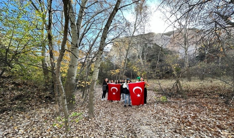 NEVÜ Gülşehir SBMYO Müdür Yardımcısı Öğr. Gör. Dr. Mehmet Uçar ve Öğr. Gör. Talip Kurşuncu rehberliğinde bir araya gelen öğrenciler, ellerinde Türk bayrakları ile Göreme Zemi Vadisi’nin eşsiz doğal ve tarihi güzellikleri arasında Cumhuriyet’in 100. yılını kutladı. Akademisyenler ve öğrenciler ayrıca sosyal sorumluluk adına vadi boyunca çevre temizliği yaptı.