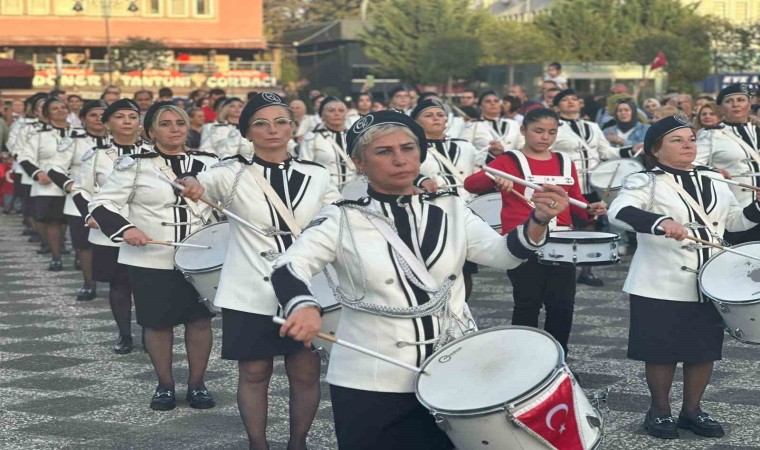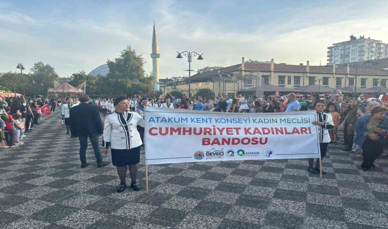 Bando gösterisini gören vatandaşlar bu anları cep telefonu kameralarınca kaydetti. ’Cumhuriyet Bayramınız Kutlu Olsun’ ve ’Ne Mutlu Türküm Diyene’ şeklinde slogan atan kadın bando takımı alkışları topladı.
