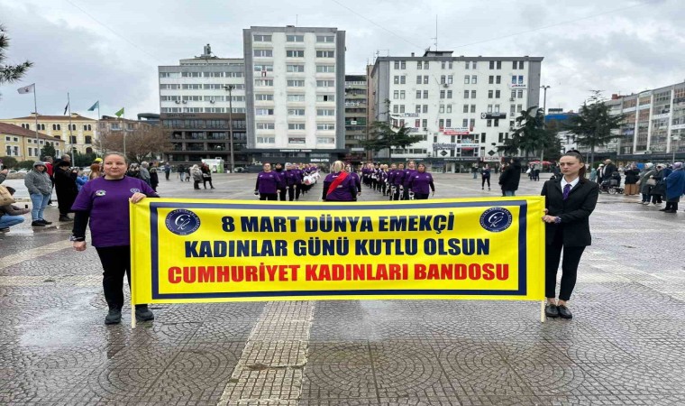 Samsun’da farklı meslek gruplarından kadınların oluşturduğu Cumhuriyet Kadınları Bando Takımı, 8 Mart Dünya Kadınlar Günü’ne özel gösteri yaptı.