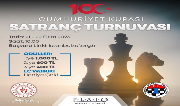 Cumhuriyetin 100.yili kapsamında 21-22 Ekim tarihlerinde TSF iş birliği Plato AVM ev sahipliğinde Cumhuriyet Kupası Satranç Turnuvası düzenleniyor.