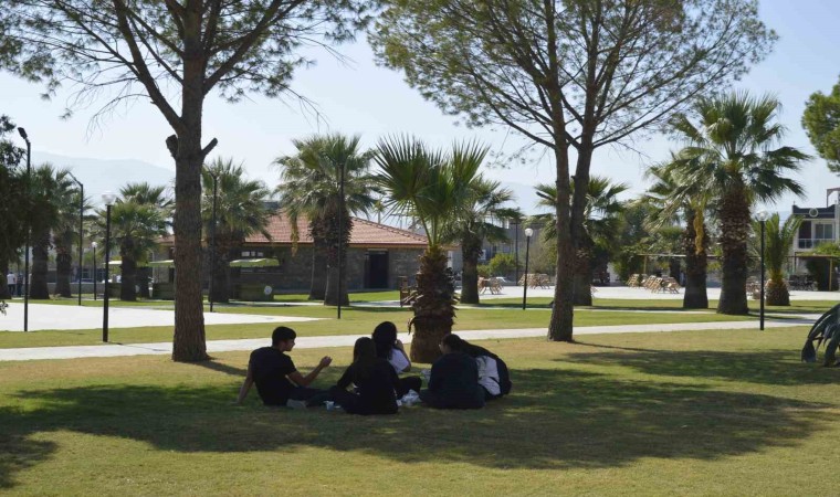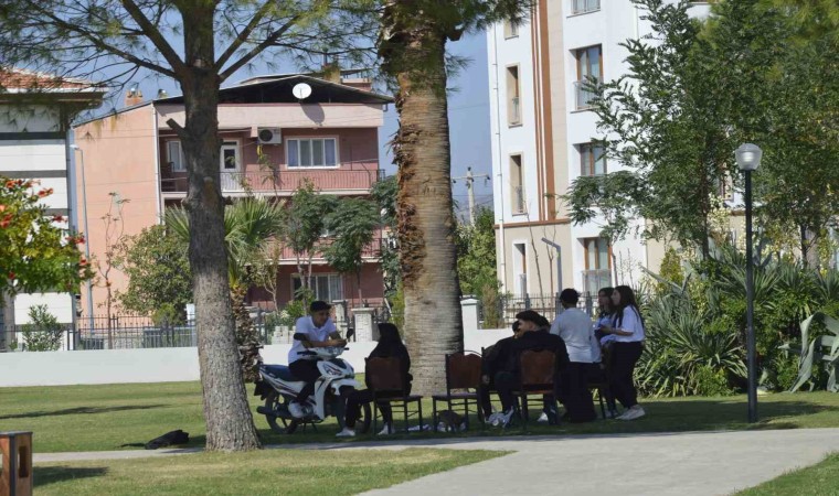 Aydın’ın Çine ilçesinde bulunan Cumhuriyet Parkı’nda öğrenciler, öğle aralarında bir araya gelerek eğlenceli vakit geçiriyor.
