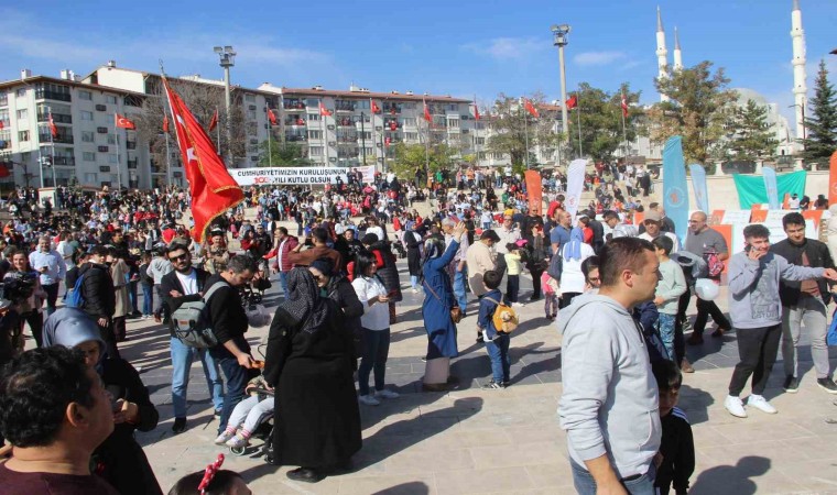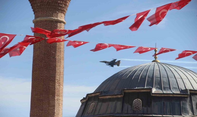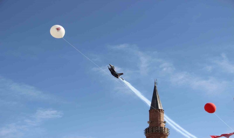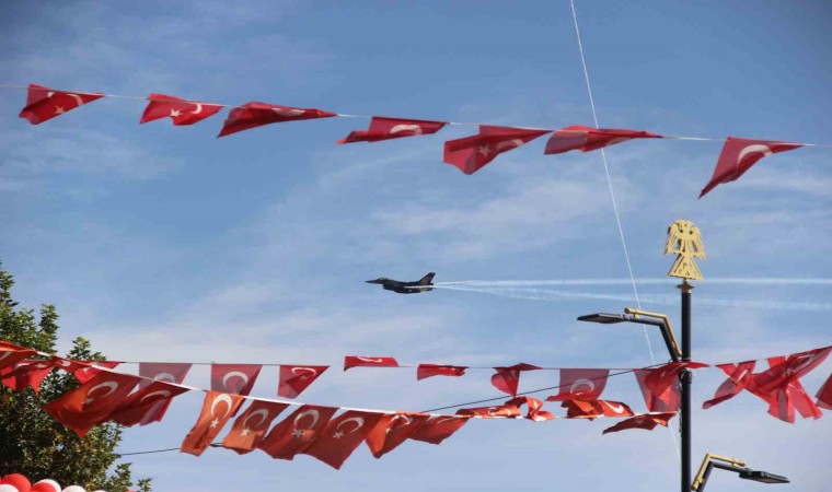 Cumhuriyet’in 100’ncü yılı etkinlikleri çerçevesinde SOLOTÜRK gösteri uçuşu yapıldı. Nefes kesen gösteri uçuşunu yüzlerce vatandaş kent meydanından takip etti.