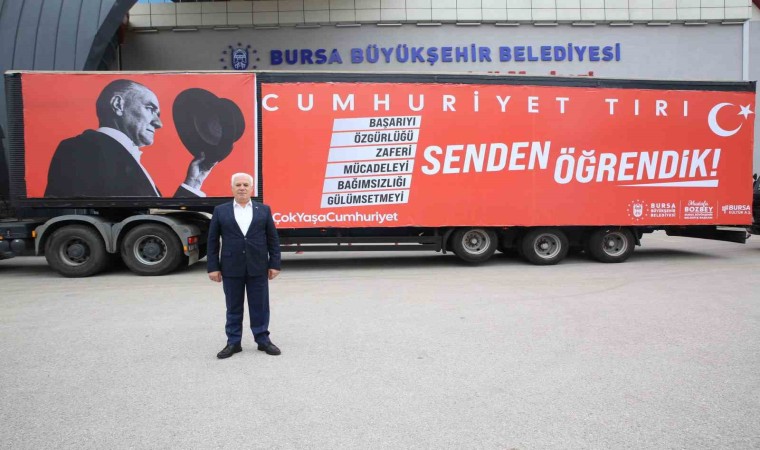 Cumhuriyet coşkusunu tüm kente yaymayı hedefleyen Bursa Büyükşehir Belediyesi, özel olarak hazırlanan ‘Cumhuriyet Tırı’ ile Gemlik, Osmangazi, İznik ve Orhangazi’de Ulu Önder Mustafa Kemal Atatürk’ün "Benim en büyük eserim" dediği Cumhuriyet’in değerlerini Bursalılarla buluşturdu.