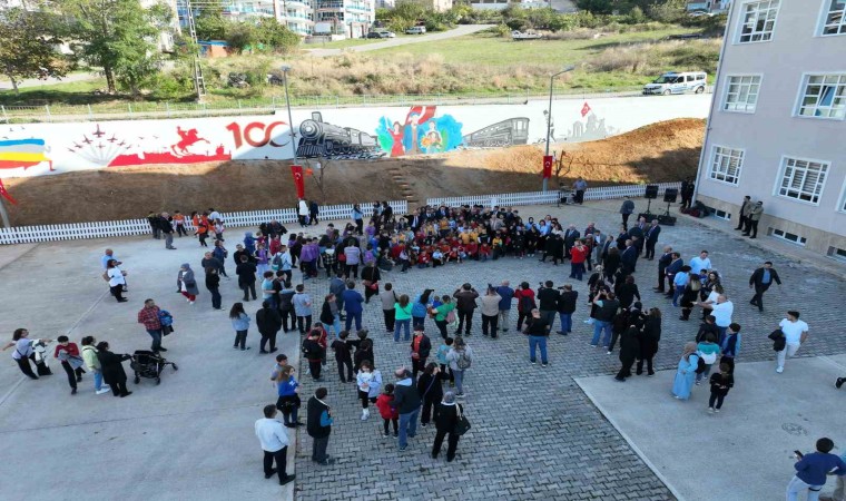 Sinop’ta Bilim ve Sanat Merkezi öğretmenleri ve öğrencileri tarafından Cumhuriyet’in 100. yılına özel yapılan Cumhuriyet Treni resim çalışması tamamlandı.