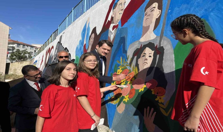 Törende konuşan Vali Yardımcısı Ali Osman Bulat, “Bu duvarın bir öncesi var. Bu duvarın 1923’ten 2023’e uzanan bir devamı da var. Bizler Orta Asya’dan başlayarak binlerce yıllık devlet geleneğimizle bu günlere geldik. Tarihte birçok devlet kurduk. Aziz milletimiz en son 1923’te Türkiye Cumhuriyeti Devletini Cumhuriyet’i ilan ederek kurdu ve bu günlere geldik. Bu duvarın devamını inşa edecekler de siz sevgili gençlersiniz. 1923’ten bu güne gelen bu birikimi ve donatıyı sizler daha ileriye taşıyacaksınız” dedi.