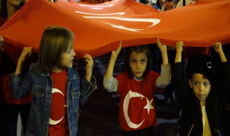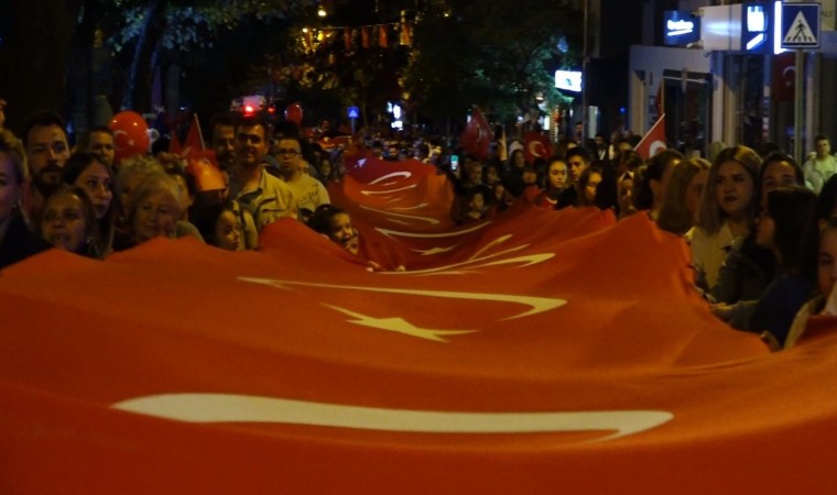 Cumhuriyet’in 100. yıl etkinlikleri kapsamında Kırklareli’nde düzenlenen yürüyüşte metrelerce bayrak açıldı.
