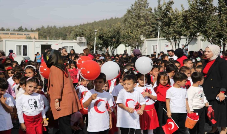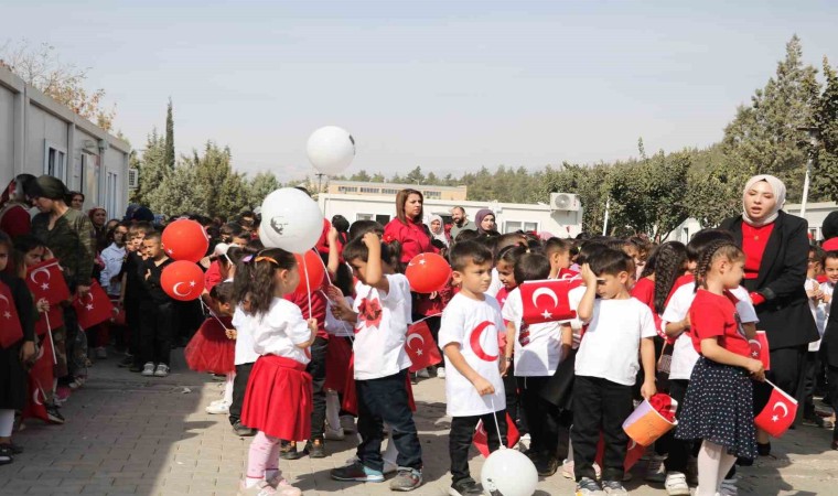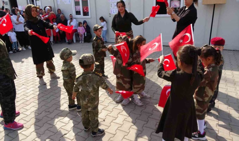 Toplamda 800 öğrencinin eğitim gördüğü konteyner okulda Gazi Mustafa Kemal Atatürk ve silah arkadaşları anısına saygı duruşunda bulunulup ve akabinde İstiklal Marşı’nın okunması ile başlayan kutlama etkinliğine öğrencilerin aileleri de katıldı.