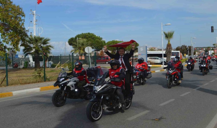 Balıkesir’in Ayvalık ilçesinde 10 Riders Balıkesir Motosiklet Kullanıcıları Spor Kulübü Derneği, Cumhuriyet’in 100. yılını Kuva-yi Milliye sürüşü ile kutladı.