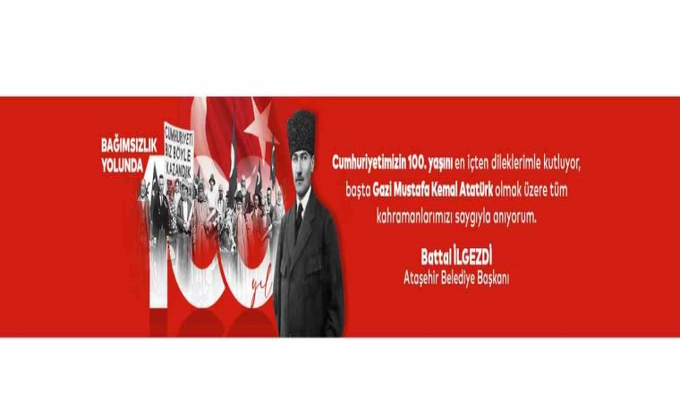 Ataşehir Belediye Başkanı Battal İlgezdi, 29 Ekim Cumhuriyet Bayramı’nın 100. yıl dönümü dolayısıyla şunları söyledi: “Cumhuriyetimizin 100. yılını kutlayacağımız bu bayramda ayrı bir coşku ve heyecan duyuyoruz. Bu anlamda Ataşehirimizde 100 yıllık aydınlığımıza yakışır bir kutlamaya hazırlanıyoruz. Cumhuriyetimizi kuran başta Büyük Önder Mustafa Kemal Atatürk olmak üzere silah arkadaşlarını sonsuz minnet ve saygıyla anıyor, Cumhuriyet Bayramımızın 100. yıl dönümünü en içten dileklerimle kutluyorum. Bu büyük coşkuyu Ataşehir’de hep birlikte yaşamak için tüm yurttaşlarımızı Ataşehir Bulvarı’na davet ediyorum.”