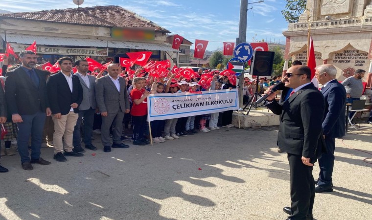 Cumhuriyetin 100. yıl dönümü münasebetiyle Atatürk anıtına çelenk bırakmanın ardından Çelikhan Cumhuriyet Meydanında düzenlenen programa Çelikhan Kaymakamı Ali Cemal Altınöz, Belediye Başkanı Mustafa Bulut, siyasi parti başkanları, kurum amirleri, ilçedeki okullar ve çok sayıda vatandaş katıldı.