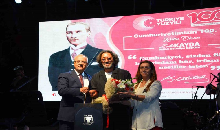 Cumhuriyet’in 100. Yılını ve Cumhuriyet Bayramını kutlayan Başkan Zeki Kayda, “Sanatçımız Fettah Can ile ilçemizin kurtuluşunun 101. Yılında buluşacaktık ancak hepimiz için daha anlamlı olan Cumhuriyet Bayramı konserinde sizlerle buluşturduk. Devlet Bahçeli Kent Meydanımızdaki Atatürk Anıtı, hem ilçemizin hem de Cumhuriyetimizin 100. Yılını temsil ediyor. Gazi Mustafa Kemal Atatürk, Cumhuriyetimizi ilan ederken “Ey yükselen yeni nesil! İstikbal sizsiniz. Cumhuriyeti biz kurduk, onu yükseltecek ve yaşatacak sizsiniz” diyerek devletimizin ve milletimizin geleceğini siz değerli gençlerimize armağan etmiştir. Cumhuriyetimizin yüzyıllık geçmişinden ilham alarak yetişen gençlerimiz sayesinde, İHA’ları, SİHA’ları, savaş gemilerini yapan, uzaya uydu gönderen bir ülke haline geldik. Atatürk’ün emirlerini ülke olarak harfiyen yerine getirdik ve başardık. Artık devletimiz daha güçlü, sizler sayesinde daha da yükselecektir. Şanlı Cumhuriyetimizin 100. Yılı kutlu olsun. Ne mutlu Türk’üm diyene!” dedi. Başkan Kayda, Salihli’nin Cumhuriyet Bayramı coşkusuna ortak olan sanatçı Fettah Can’a teşekkür ederek çiçek verdi.
