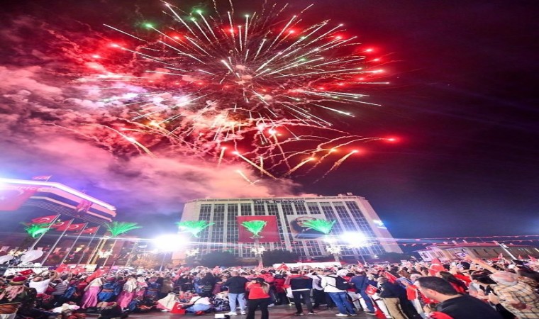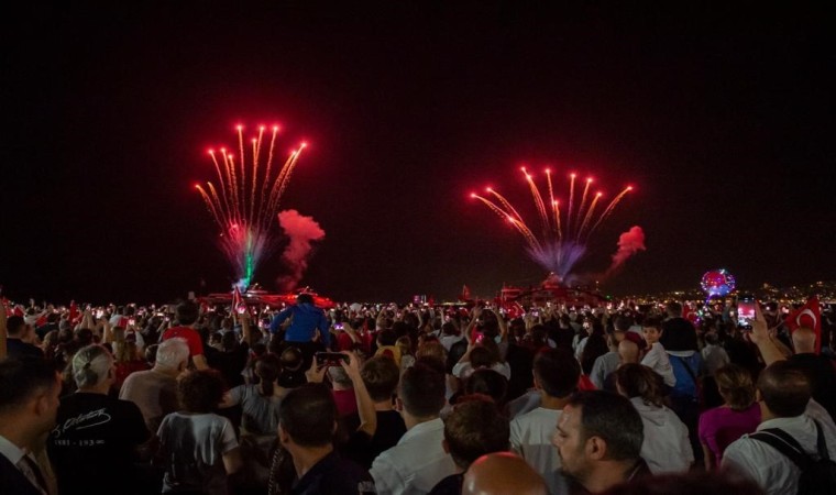Cumhuriyet’in 100. Yıl kutlamalarını İzmir’de doruğa çıkarken, geceye taşan etkinlikler fener alayı ve kortej yürüyüşüyle devam edildi. On binlerin Cumhuriyet Meydanı’na akın ettiği törenlerde yapılan ışık ve havai fişek gösterileriyle İzmir, adını 100. Yılda tarihe yazdırdı.