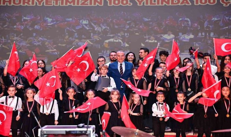 Denizli Büyükşehir Belediye Konservatuarı Çocuk Korosu ve Orkestrası, Türkiye Cumhuriyeti’nin 100. kuruluş yıldönümü kapsamında özel bir konser verdi. Cumhuriyetin 100. yılına özel 100 çocuğun sahne aldığı muhteşem geceye katılanlar unutulmaz bir performans izledi.