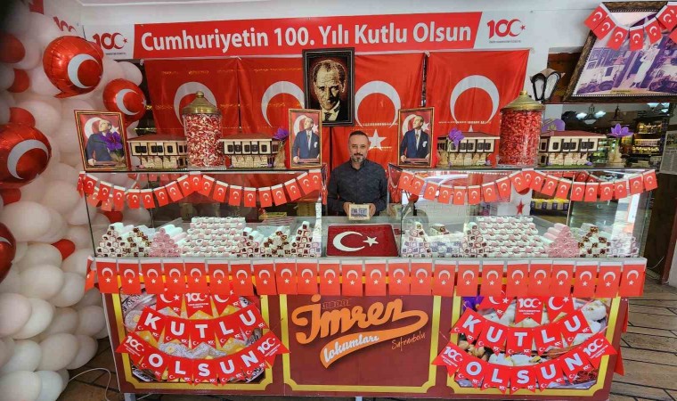 Sezer, 81 yıl önce kurulan firmalarının Cumhuriyetin 100. Yılına yakın yakın bir yaşa sahip olduğunu da belirterek, “Kırmızı beyaz ve şanlı Türk bayrağımızdan oluşan özel lokumlar hazırladığımız bir köşe oluşturduk. Gelen misafirlerimiz hem burada hâtıra olarak fotoğraf çektirmelerini hem de onlara özel üretimlerimizden lokum ikramı yapıyoruz. 1942 yılında dedemin başladığı bu sektörde ö günün şartlarından bugünün teknolojik şartlara geldik. Bizde Cumhuriyetin yaşına yakın olmak bizim içinde ayrı bir heyecan. Cumhuriyetin 100. Yılına özel kutu hazırlayarak, bin 923 kilogram özel üretim lokumlarımızı kentimizdeki kamu kurum ve kuruluşlarımızın yanı sıra tüm müşterilerimize hediye ediyoruz” dedi.