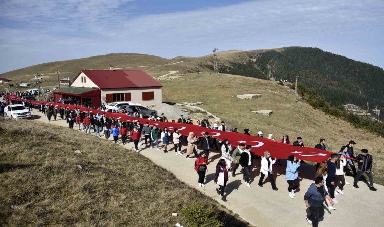 Çıkrıkdüzü Yaylasından başlayan yürüyüşte Türkiye’nin 81’ilinden Gümüşhane’de eğitim görmeye gelen üniversite öğrencileri tarafından Cumhuriyetin 100.yılına özel olarak hazırlattırılan 100 metrelik Türk Bayrağı yaklaşık 7,5 kilometrelik yürüyüş boyunca taşındı.