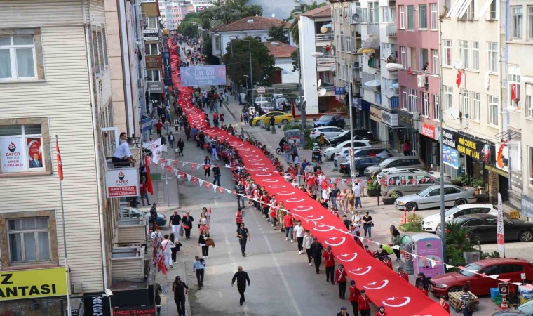 Tören, anıttaki programın ardından 1919 metrelik Türk Bayrağı eşliğindeki yürüyüş ile devam etti. Bando eşliğinde Atatürk Anıtı’nda başlayan yürüyüş; Cumhuriyet Caddesi, Lise Caddesi ve İstiklal Caddesi’nin ardından 19 Mayıs Bulvarı’nı takiben Cumhuriyet Meydanı’nda sonlandı. Yürüyüşün ardından meydanda Sahra Sıhhiye Okulu ve Eğitim Merkezi Komutanlığı Bandosu’nun mini konseri gerçekleşti.