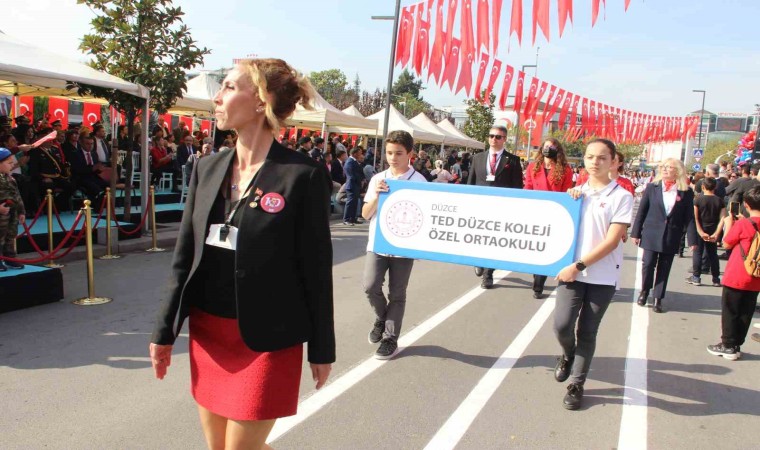 Cumhuriyet Bayramı kutlamaları çerçevesinde Düzce Valiliği önünde geçmiş yıllarda olduğu gibi resmi geçit töreni düzenlendi. Düzce’de eğitim öğretim gören bütün okulların katıldığı geçit töreninde TED Düzce Kolejinin geçişi ise göz kamaştırdı. Öğrenci ve öğretmenlerinin coşkuyla yaptığı geçit töreninde okulun bando takımının çaldığı marşlara öğrenciler, uygun adımlarla eşlik etti.