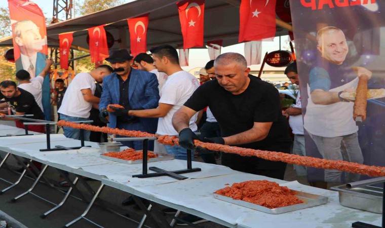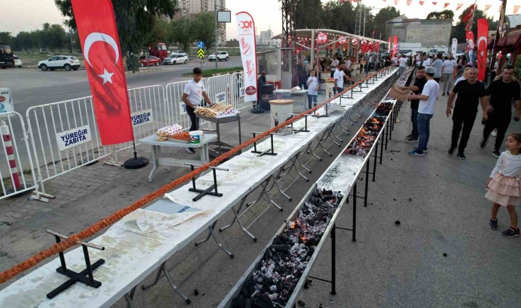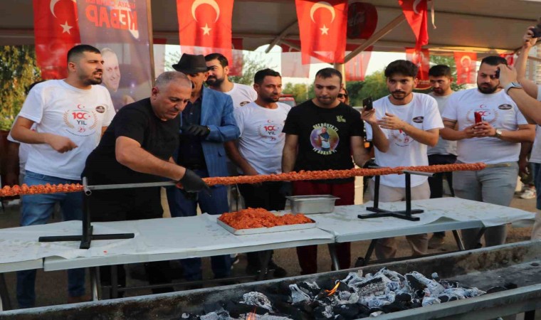 Adanalı kebapçı, Cumhuriyet’in 100. yılı nedeniyle tek şişte 100 metrelik boru kebabı yaptı. Hazırlanan kebap vatandaşlara ikram edilirken, dumanı gökyüzünü kapladı.