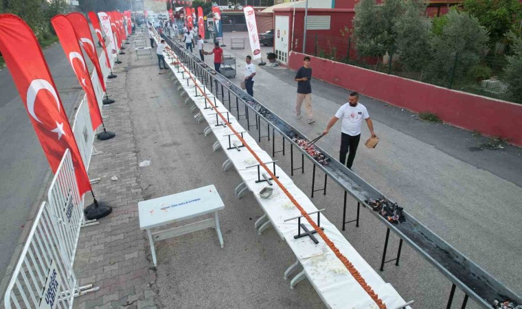 Yaklaşık 20 dakikada pişen 100 metrelik boru kebabı daha sonra 500 kişiye dağıtıldı. Ayrıca 100 metrelik kebap nedeniyle gökyüzü adeta dumanla kaplandı ve o anlar dron ile görüntülendi.