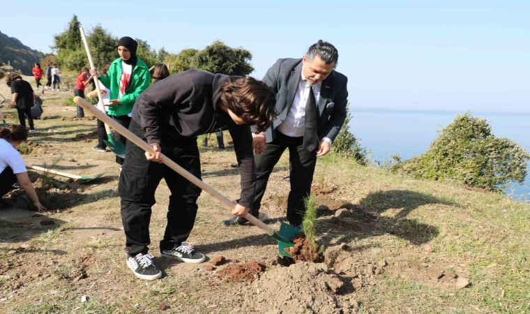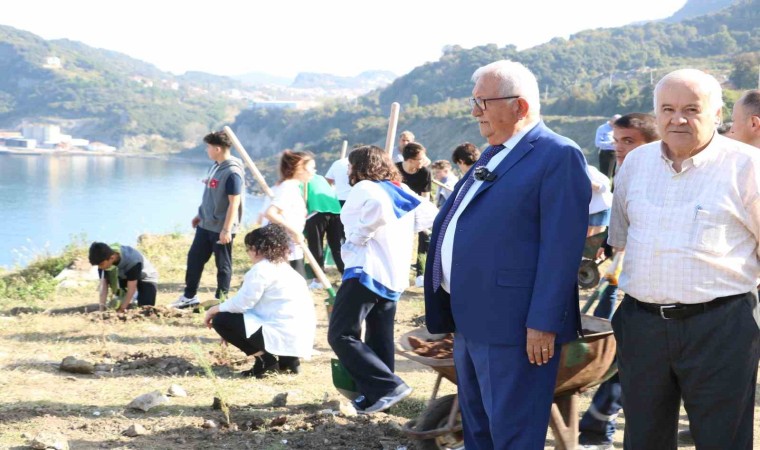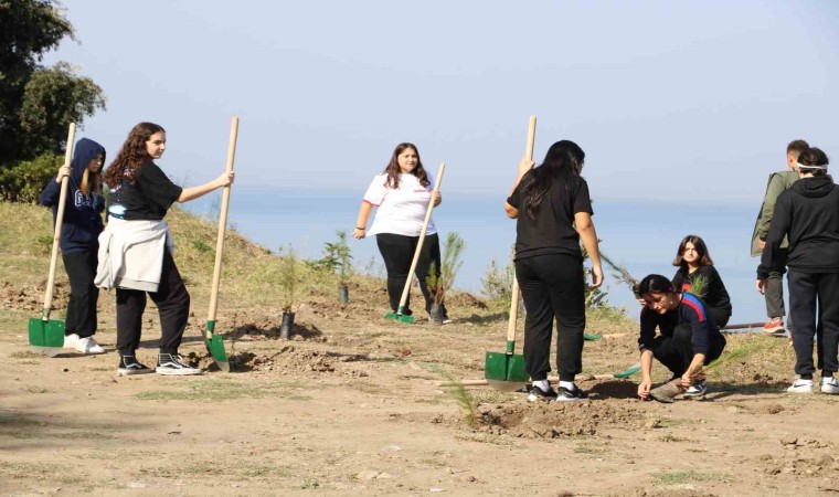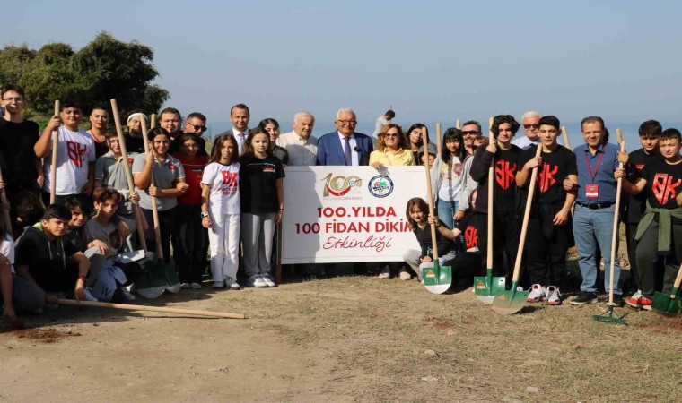 Zonguldak’ın Ereğli ilçesinde öğrenciler Cumhuriyet’in 100. yılı kutlamaları çerçevesinde fidan dikme etkinliği gerçekleştirdi.