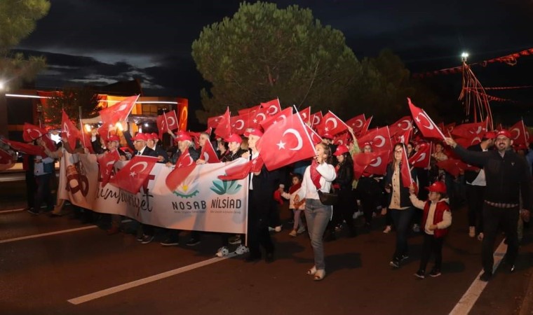 Türk Bayrakları eşliğinde NOSAB Atatürk Bulvarı’nda gerçekleştirilen Cumhuriyet Korteji’nin ardından etkinlik alanında bir konuşma yapan NOSAB Başkanı Erol Gülmez, Cumhuriyet’i meydanlarda kutlamak istediklerini ifade etti.
