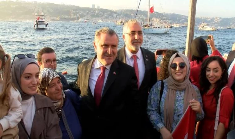 Kuleli Kaymak Mustafa Paşa Camisi’nin bahçesinde düzenlenen etkinlikte Gençlik ve Spor Bakanı Osman Aşkın Bak ile Çalışma ve Sosyal Güvenlik Bakanı Vedat Işıkhan, vatandaşlarla İstanbul Boğazı’ndaki Cumhuriyetin 100’üncü yılında tarihin en görkemli resmi geçidini takip etti.