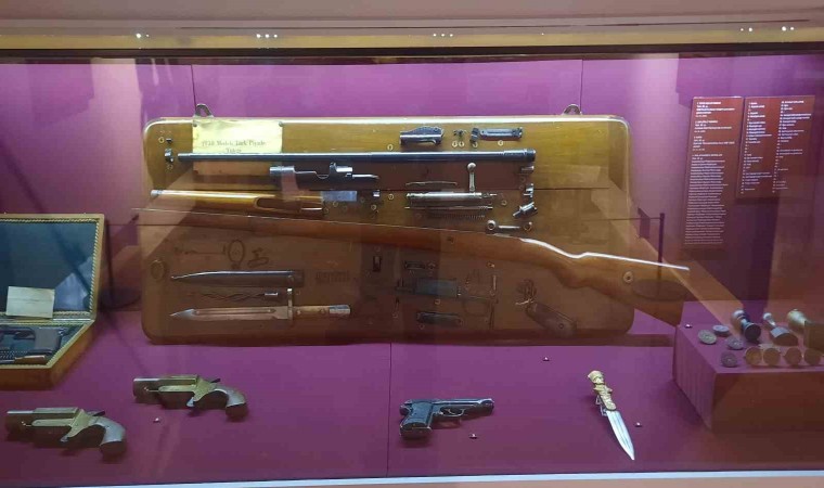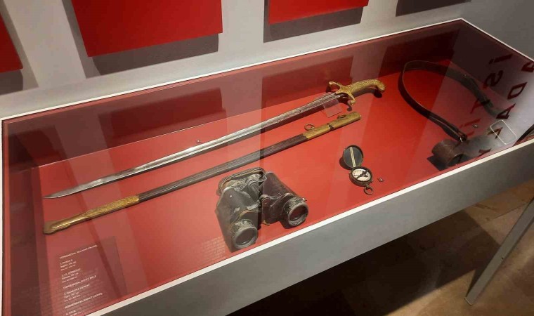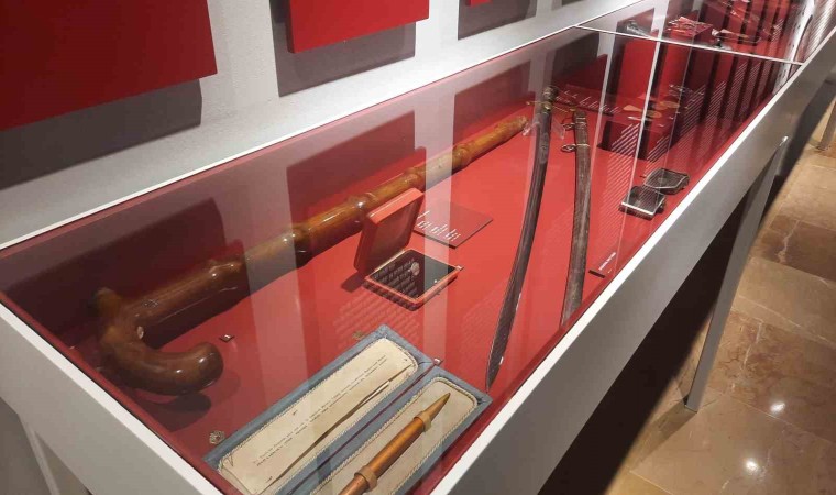 Atatürk’ün tabancası, şapkası ve bastonu gibi birçok eşya sergide yer alıyor