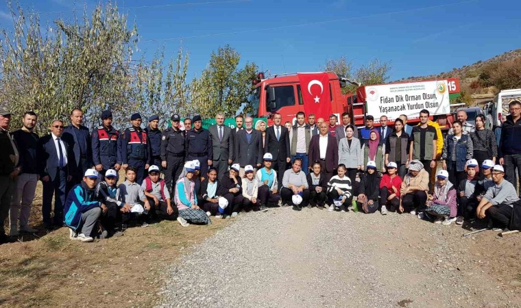 Çorum’un Bayat ilçesinde Cumhuriyet’in 100’üncü yıl etkinlikleri çerçevesinde 100 fidan toprakla buluşturuldu.
