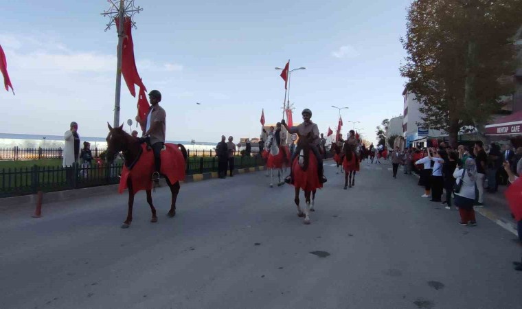 Törende konuşan Kaymakam Baycar, “Türkiye Cumhuriyetinin kuruluşunu diğer yıllardan farklı olarak bu yıl bir başka beklemekteyiz. Çünkü dünden bu yana biraz daha her gün ilerleyip kalkınıp modernleşerek bölgesinde artık tüm Dünya’da örnek bir ülke haline gelmektedir. Bunu da görmekteyiz. Bugünde Cumhuriyet Bayramı kutlamaları çerçevesinde Binicilik ve Kültür Derneği, örnek bir programla katılım gösterdi. Ecdadımızın Kurtuluş Savaşında cepheye mühimmat ulaştırdığı güzergahta Binicilik ve Kültür Derneğinden 60 atlı birlik, İnebolu’dan tarihi İstiklal Yolu üzerinden Kastamonu’ya hareket edecekler. Bizlerde şanlı bayrağımızı atlı birliklere teslim edeceğiz. Yolları bahtları açık olsun” dedi.