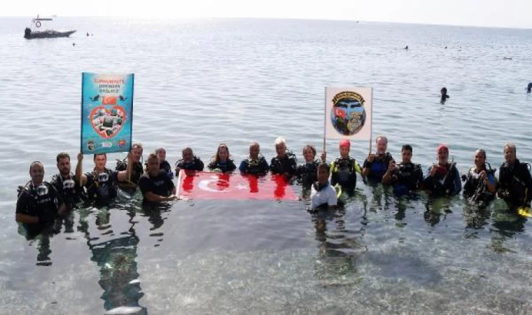 Adem AKALAN-Aslı DURAN/ANTALYA, (DHA)- CUMHURİYET'in 100'üncü yılı etkinlikleri kapsamında 1000 dalgıç, 135 noktada dalış etkinliği gerçekleştirdi. Antalya Sualtı Sporları Kulubü (ANTSAK) ile Akdeniz Yunus Dalış Merkezi'nden 20 dalgıç da Konyaaltı Sahili'nde Türk bayrağı açıp, dalış yaptı.