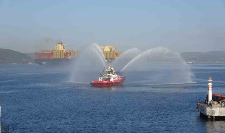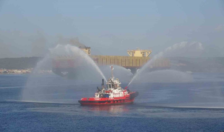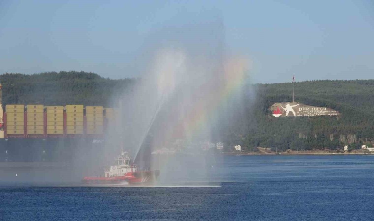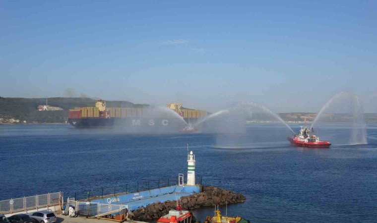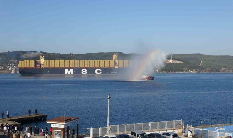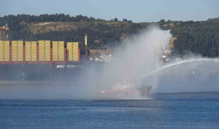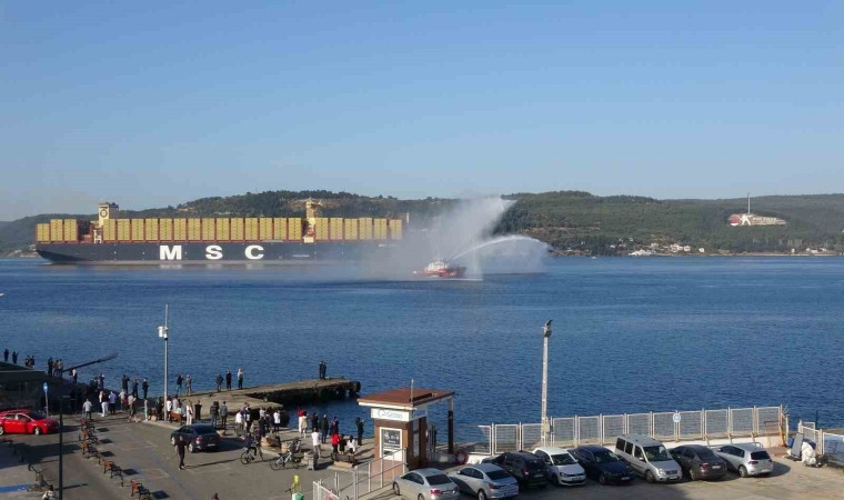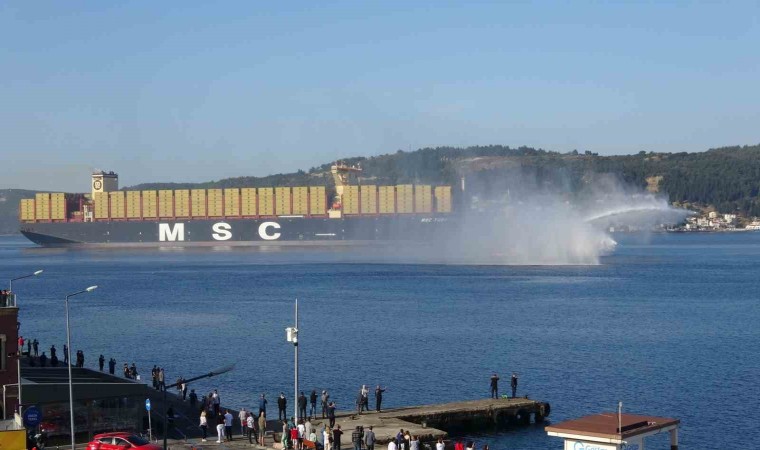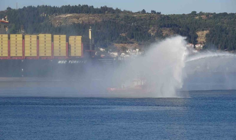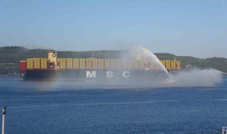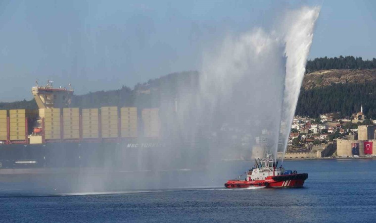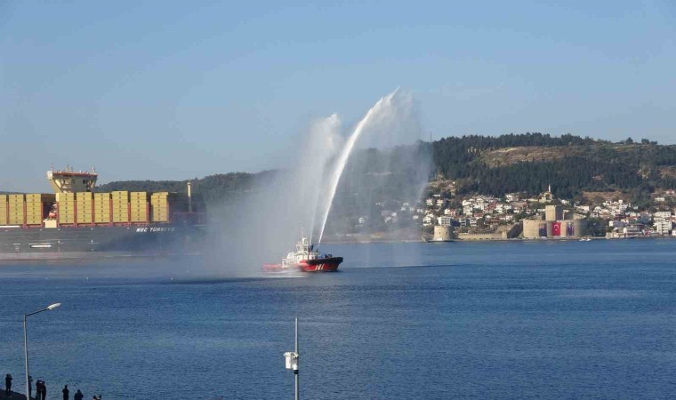 İngiltere’nin Felixstowe Limanı’ndan yola çıkan ve Tekirdağ’a giden Liberya bayraklı 399.9 metre uzunluğundaki ‘MSC Türkiye’ Ege Denizi’nden saat 09.00 sıralarında Çanakkale Boğazı’na giriş yaptı. Saat 10.10 sıralarında Çanakkale önlerinde olan ‘MSC Türkiye’ 29 Ekim Cumhuriyet Bayramı’nın 100’üncü yıl dönümünde Kilitbahir Kalesi ile Kilitbahir köyü dağında bulunan ‘Dur Yolcu’ yazısı önünden geçti. Geminin Çanakkale önlerinden geçişi sırasında Kıyı Emniyeti Genel Müdürlüğüne bağlı römorkörler su gösterisi ve selamlama yaptı.