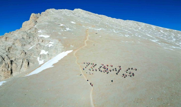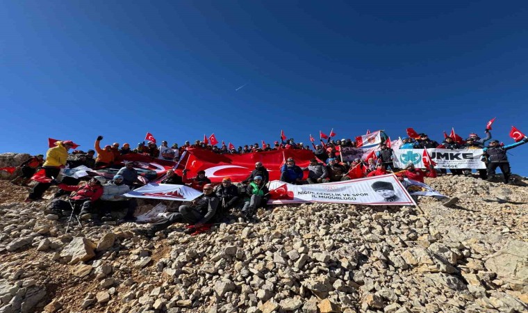 Niğde’de Cumhuriyet Bayramı’nın 101. yılı kutlamaları çerçevesinde Aladağlar’ın Emler Zirvesi’ne tırmanan dağcılar, zirvede TUSAŞ şehitlerini andı.