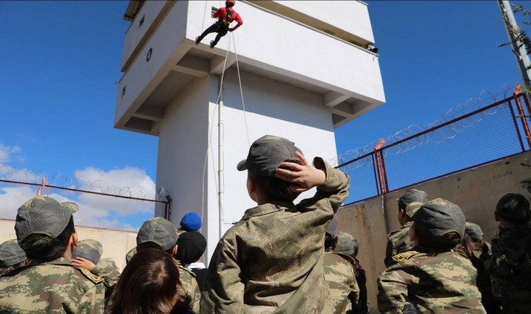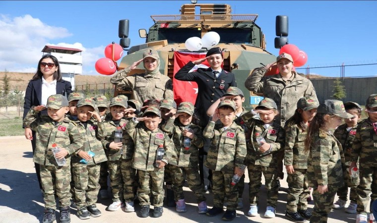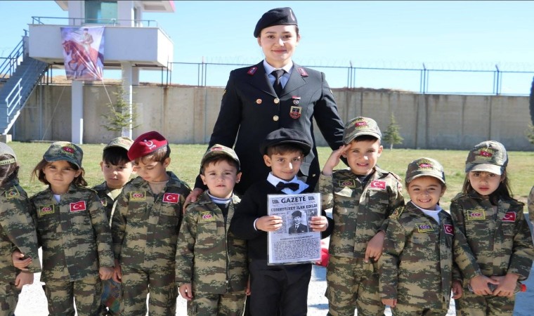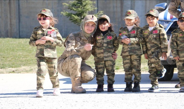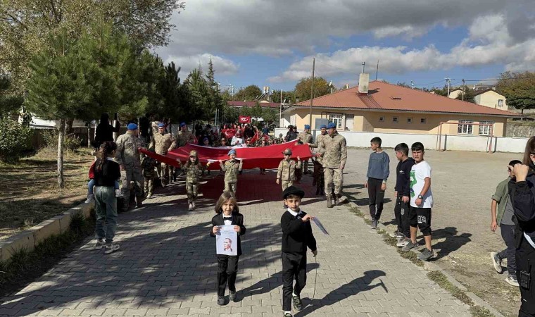 Cumhuriyet’in 101. yılı kapsamında Cumhuriyet Anaokulu öğrencileri, Tatvan Jandarma Komando Özel Harekat Tabur Komutanlığı’na kortej yürüyüşü gerçekleştirdi. Askeri ve polis araçlarının eşlik ettiği kortejde minik öğrenciler, 20 metrelik Türk bayrağını büyük bir gururla taşıdı. Tatvan Jandarma Komando Özel Harekat Tabur Komutanlığı bahçesinde yapılan törende, Kahraman şehitlerin isimlerinin yer aldığı anıtın önünde saygı duruşunda bulunulup İstiklal Marşı okundu. Programda, ana sınıfı öğrencilerinden Yiğit Kılıç, ‘Komando Marşı’nı seslendirirken; Işıl Erva Desenli ise İstiklal Marşı’nı okudu. Tatvan İlçe Milli Eğitim Müdürü Hüseyin Uludağ, programla ilgili yaptığı açıklamada, “Cumhuriyet Anaokulu’ndaki 120 öğrencimiz ve öğretmenlerimizle birlikte Tatvan Jandarma Özel Harekat Tabur Komutanlığı’nı ziyaret ettik. Bugünün anısına Mehmetçikle buluşmaya geldik ve hep birlikte Cumhuriyetimizin 101. yıl dönümünü kutladık. Programda emeği geçen herkese, özellikle Mehmetçik’e şükranlarımızı sunuyoruz” dedi.