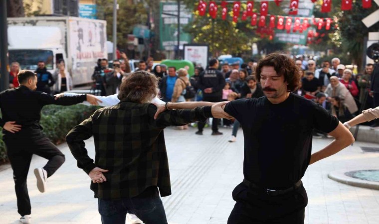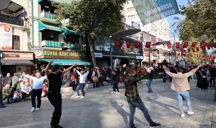 Kocaeli’de Cumhuriyet’in 101. yılına özel davul ve zurna eşliğinde zeybek gösterisi düzenlendi. Bir anda karşılarında zeybek oynayan grubu gören vatandaşlar, gösteriye hayran kaldı.
