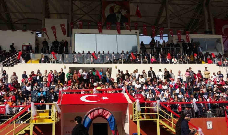 Karaelmas Kemal Köksal Şehir Stadı’nda Zonguldak Valisi Osman Hacıbektaşoğlu’nun törene katılanların bayramını kutlamasıyla başlayan kutlamalar; saygı duruşunda bulunulmasının ardından İstiklal Marşı’nın okunmasıyla devam etti.