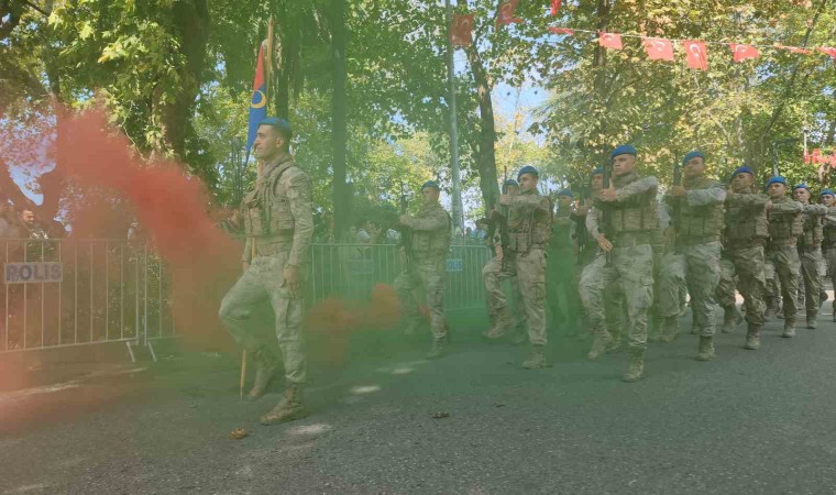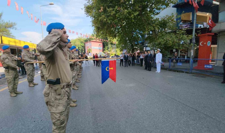 İstiklal Marşı’nın okunmasının ardından günün önemini anlatan şiirler okundu. Cumhurbaşkanı Recep Tayyip Erdoğan’ın mesajının da okunduğu törende Garnizon Komutanı Personel Binbaşı Ayhan Kafalı Zafer Bayramı ile ilgili bir konuşma yaptı. Yöresel oyunların sergilendiği törende Karadeniz Ereğli’den bisikletle gelen sporculara ödüllerinin verilmesinin ardından kortej geçişi yapıldı. Muharip gaziler, polis ve jandarmanın yanı sıra sporcular ile resmi araçların geçişinin ardından tören sona erdi.