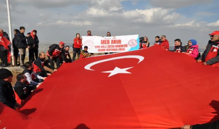 Volkan KARABAĞ/KARS, (DHA)- KARS’ta Cumhuriyetin 100'üncü yıl dönümünde 2254 rakımlı Büyük Yahni Dağı’nın zirvesine çıkan yüzlerce kişi, dev Türk bayrağı açıp, hep bir ağızdan 'Yaşasın Cumhuriyet' dedi.