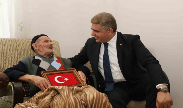DÜZCE(İHA) – Düzce Valisi Selçuk Aslan, Cumhuriyet ile yaşıt 100 yaşındaki Harun Yeşilyurt’u ziyaret etti, Türk Bayrağı hediye etti.