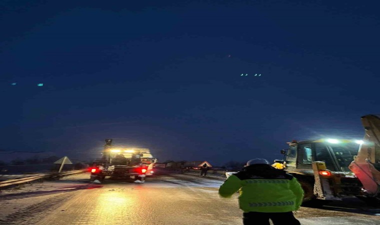 Çankırı’nın kuzey kesimlerinde bulunan Çerkeş Atkaracalar ve Kurşunlu ilçesi güzergahında bulunan D-100 karayolunun İstanbul istikameti, yoğun kar yağışı ve buzlanma sebebiyle ulaşıma kapandı. İstanbul istikametinde seyir halinde olan araçlar, zemini kaplayan kar ve buzlanma sebebiyle yolda saatlerce mahsur kaldı. Uzun kuyrukların oluştuğu yolda sürücüler kontak kapattı. Geçişlerine izin verilmeyen sürücüler, dinlenme tesislerine yönlendirildi. Ekipler, ulaşımın yeniden sağlanabilmesi için çalışmalarını sürdürüyor.