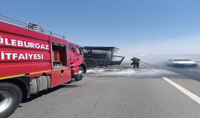 Kırklareli’nin Lüleburgaz ilçesinde D-100 karayolunda bir tırda yangın çıktı. Olay yerine sevk edilen itfaiye ekipleri, hızla müdahale ettiği yangını söndürdü.