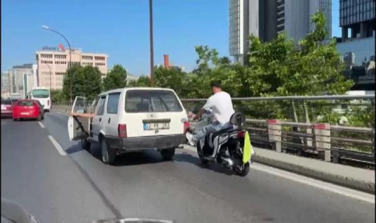 Mustafa Mert KARACA- Murat DELİKLİTAŞ / İSTANBUL, (DHA)- ŞİŞLİ’de yolda kalan otomobile motosikletli sürücüler arkasından ittirerek yardım etti.