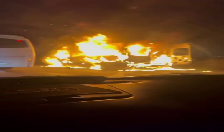 Sakarya’nın Hendek ilçesi D-100 kara yolunda işçileri taşıyan servis aracı alev alev yandı. Herhangi bir can kaybı veya yaralananın olmadığı yangında midibüs hurdaya döndü.
