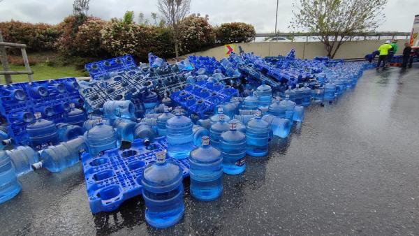 Serdar ALTINTEPE / İSTANBUL,(DHA) BAKIRKÖY D-100 yanyolda viraja hızlı giren TIR'daki yüzlerce damacana yola saçıldı. Kaza nedeniyle yol yaklaşık 2 saat trafiğe kapandı. Yoldaki damacanaların toplanıp başka bir kamyonete yüklenmesinin ardından yol yeniden trafiğe açıldı.