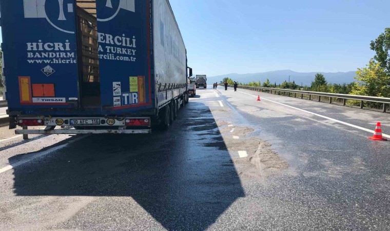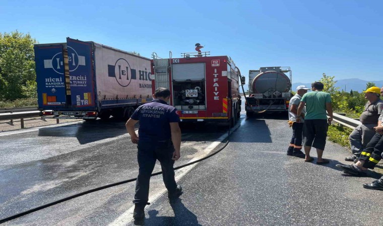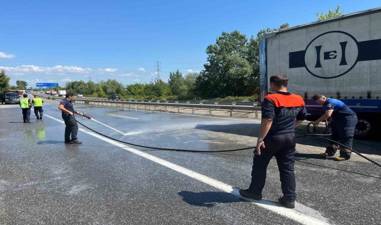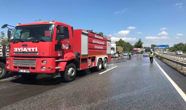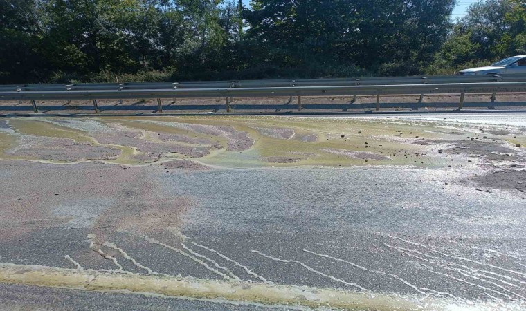 Sakarya’nın Akyazı ilçesi D-140 kara yolu otoyol gişeleri mevkiinde tırdan yola dökülen asit paniğe sebep oldu. Trafiğe kapatılan yol, AFAD ekiplerinin de sevk edildiği bölgede yapılan çalışmaların ardından temizlenerek tekrar açıldı.