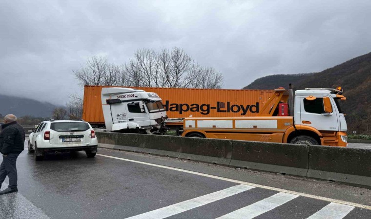 Kazaya karışan tırda yolcu tarafında oturan İsmail Aktepe, “Tır sollama yaptı virajı alamayınca önce bariyerlere vurdu sonrasında da ters döndü. Arkasından gelen bir otomobilde kaza yapan araca çarpmamak için fren yapınca kontrolden çıkarak bizim tırımıza çarptı” dedi.
