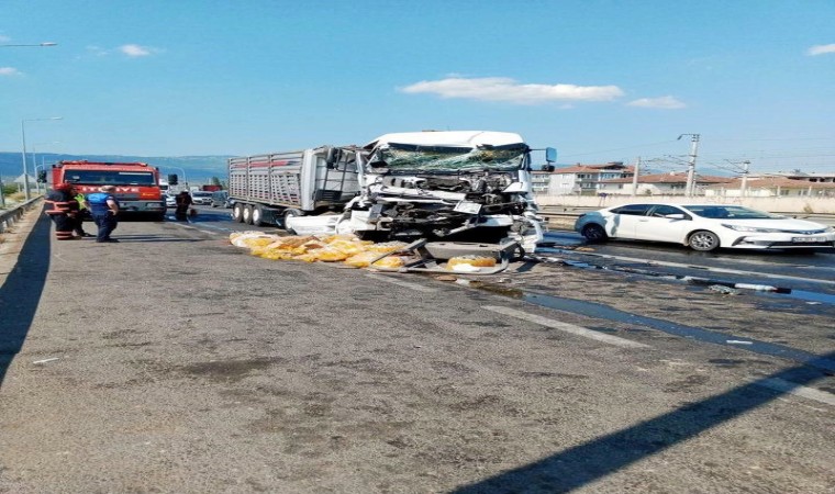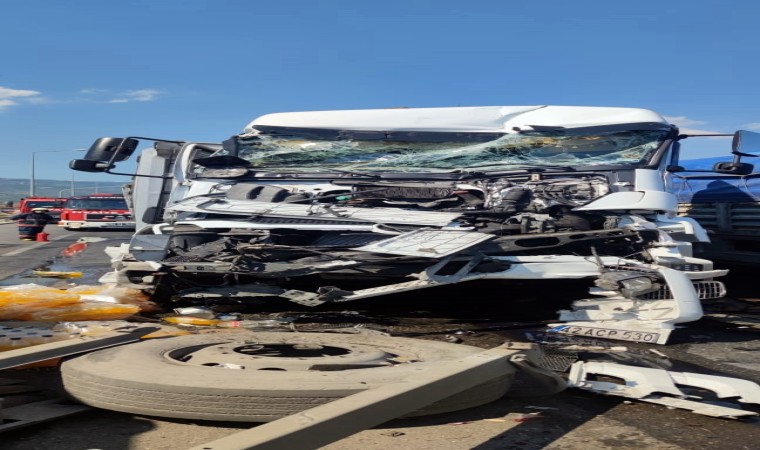 Öte yandan, kaza anı ise güvenlik kamerasına yansıdı. Görüntülerde, kırmızı ışıkta bekleyen tıra, arkasından gelen tırın çarptığı anlar yer aldı.